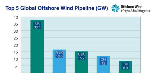 歐洲仍然是海優(yōu)勢電的最大單一區(qū)域,占全球管道項目的66%。歐洲由英國主導(dǎo),英國在不同的開展階段的海優(yōu)勢電項目容量累計超越38.4吉瓦,在曩昔的12個月中增加了9%。